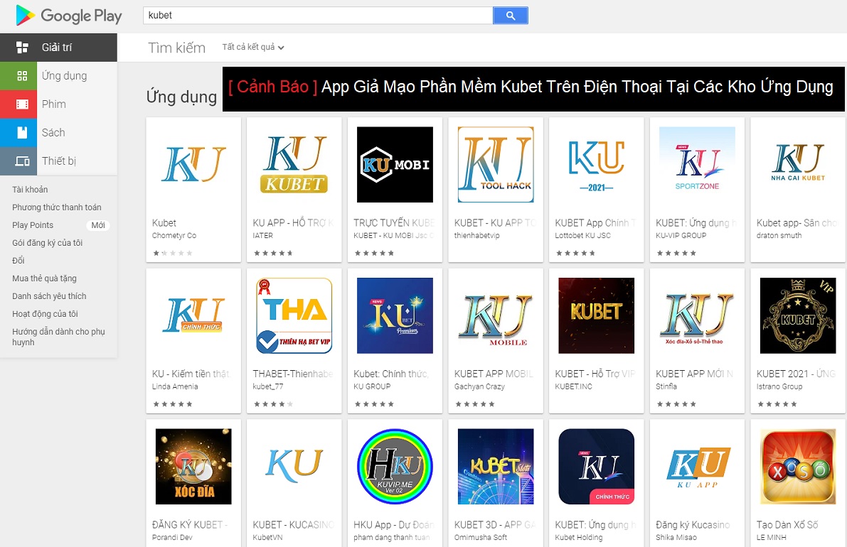 Bạn không thể tải app kubet tại những kho ứng dụng của Google và Apple . Những app này đều là kém chất lượng giả mạo phần mềm kubet. Bởi chính sách của google là không cho phép tải ứng dụng cờ bạc lên play store.