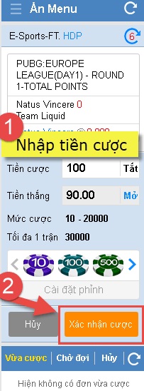 Sau khi nhập cược của bạn, nhấp vào “Xác nhận đặt cược” để xác nhận đặt cược của bạn.