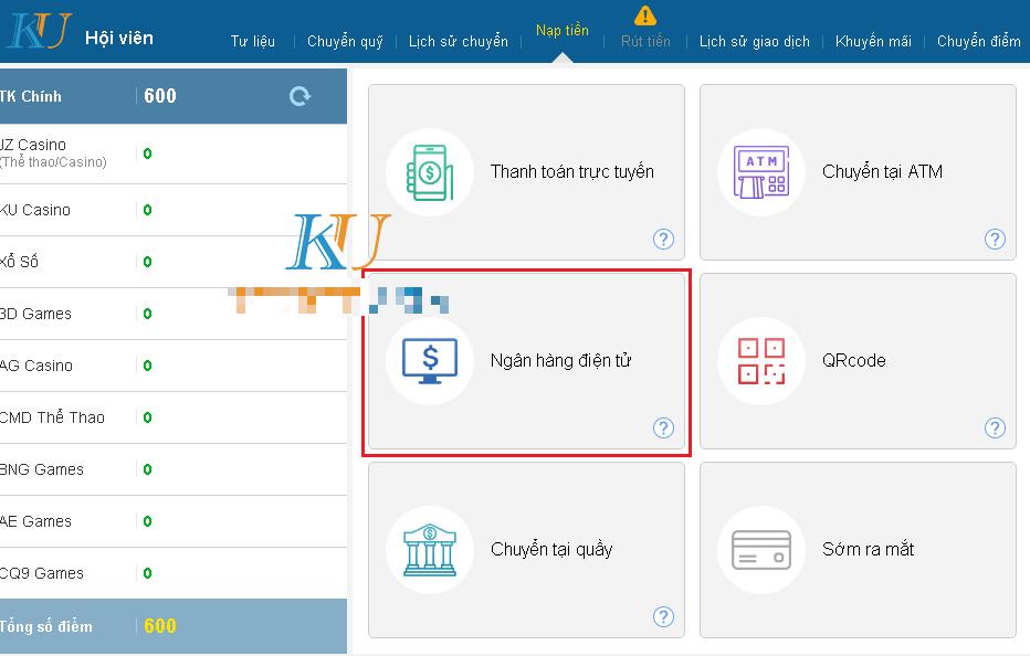 Nếu bạn biết cách nạp tiền khác như nạp tiền qua Qrcode thì có thể lựa chọn hình thức này nhanh hơn. Còn không hãy xem Hướng dẫn nạp tiền vào Kubet từ ngân hàng Đông Á Bank