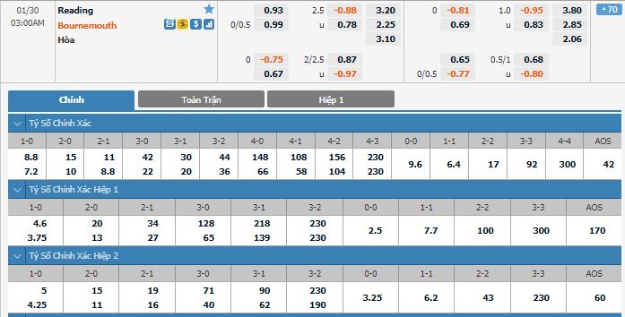 Nhưng giới chuyên môn vẫn tin rằng Bournemouth sẽ giành trọn 3 điểm ở trận này. Tôi nói điều này bởi Reading được coi là con mồi ưa thích của Bournemouth trong những năm gần đây. Cụ thể, Bournemouth toàn thắng 5 trận gần nhất tiếp đón Reading tại giải Ngoại hạng Anh. Kèo châu Á, đội khách chấp 1/4, chấp 2,5, lựa chọn đội khách và đặt cược là hợp lý.