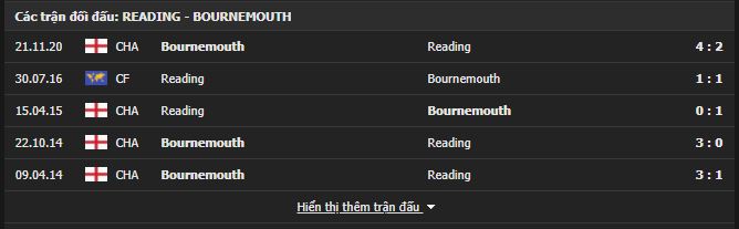 Thành tích Reading vs Bournemouth: