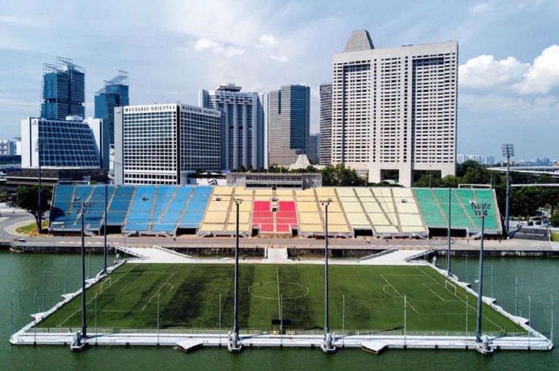 Được quảng cáo là sân bóng nổi lớn nhất thế giới, The Float được xây dựng hoàn toàn bằng thép và có bề mặt có thể chịu được sức nặng của hơn 9.000 người. Địa điểm này dự kiến ​​sẽ được chọn làm nơi tổ chức trận chung kết Cúp Singapore giữa Warriors và Woodlands Wellington. Tuy nhiên, kế hoạch này sớm bị hủy bỏ do lo ngại về an ninh.