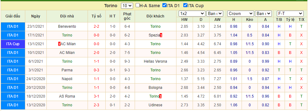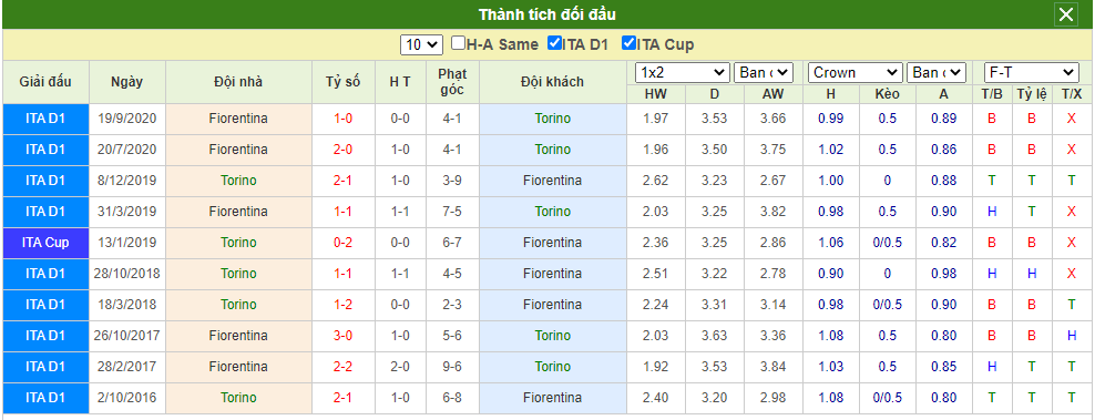 Kèo châu Âu Torino FC vs Fiorentina